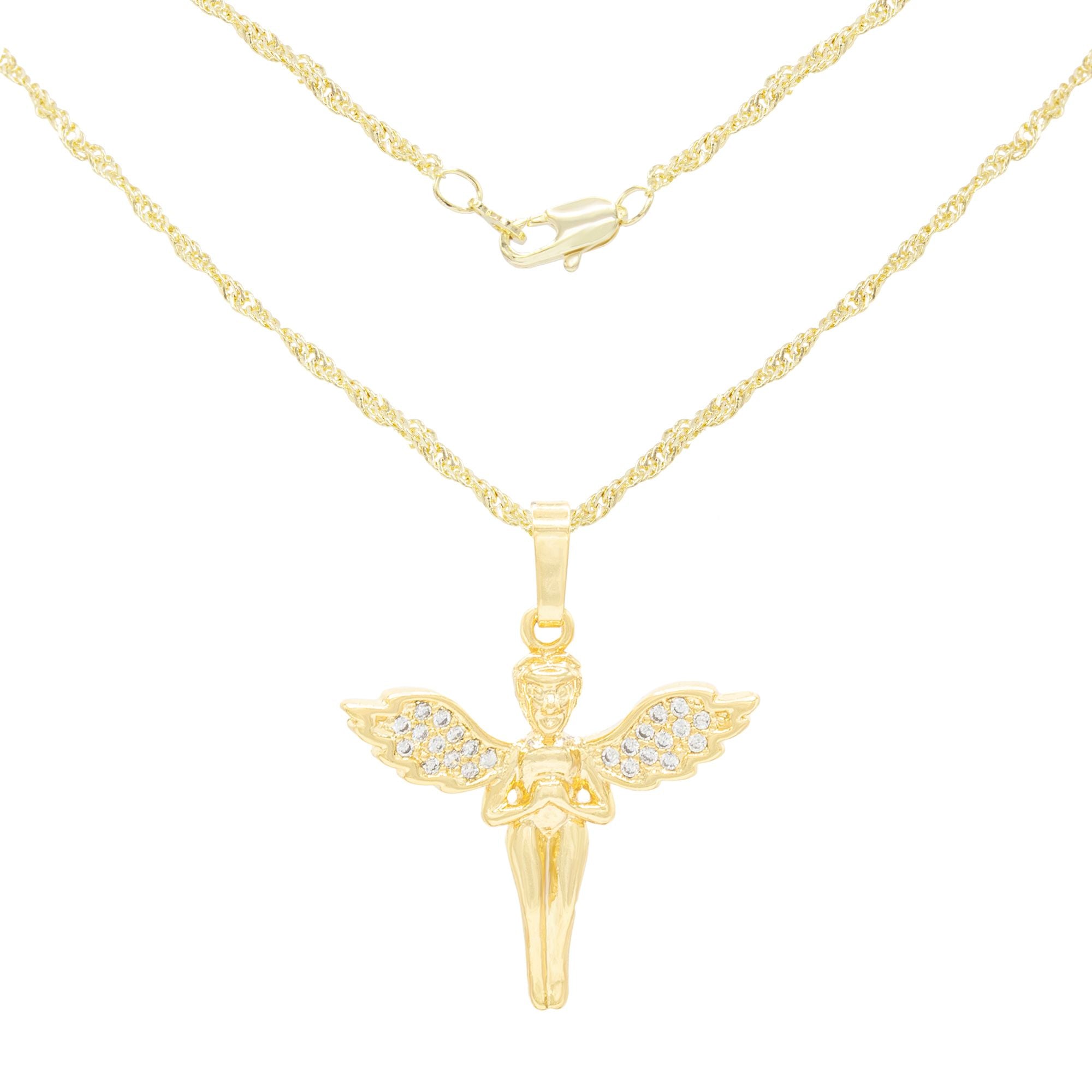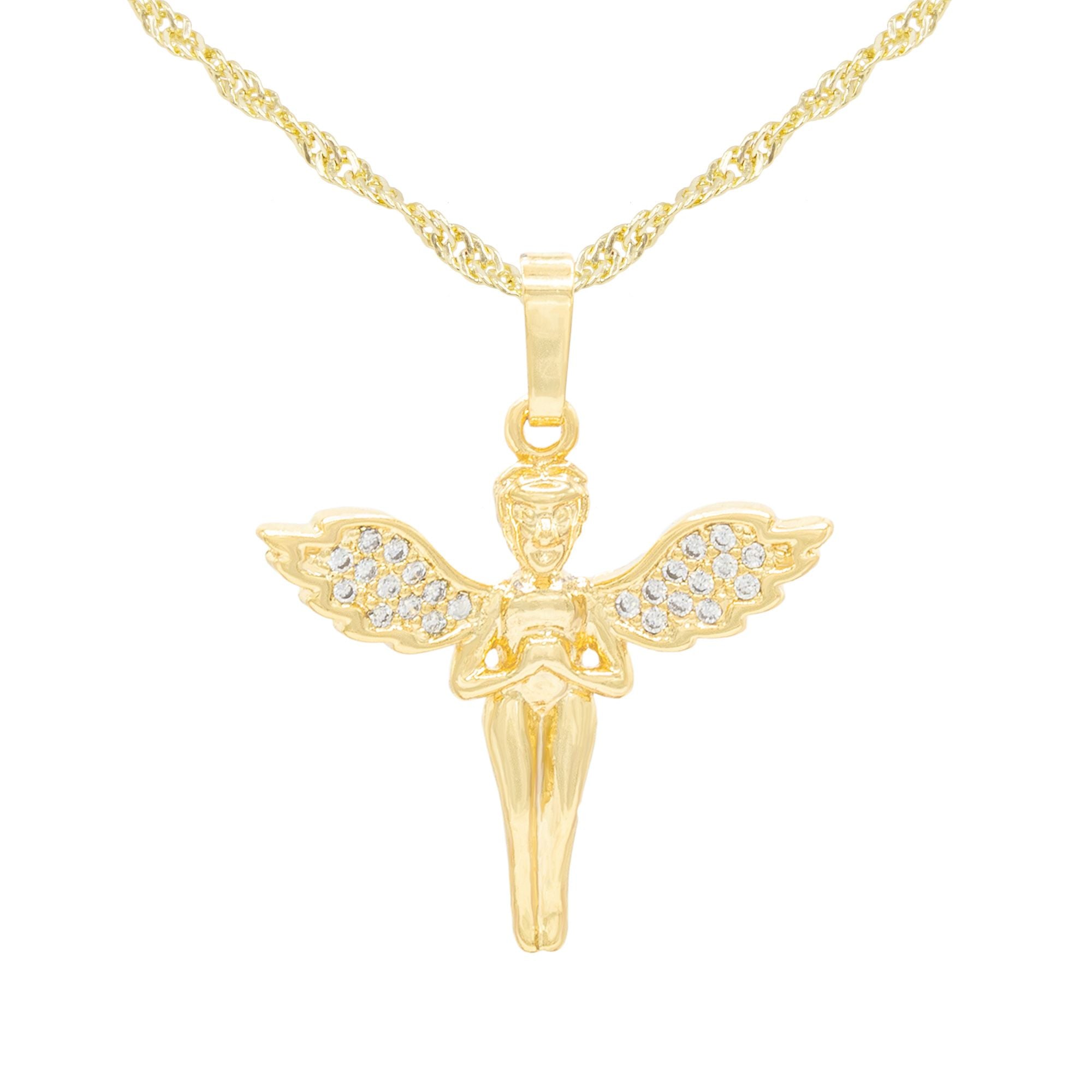 - 14K High-Quality Gold Filled Necklace Cubic Zirconia Angel Pendant Fashion Jewelry Set