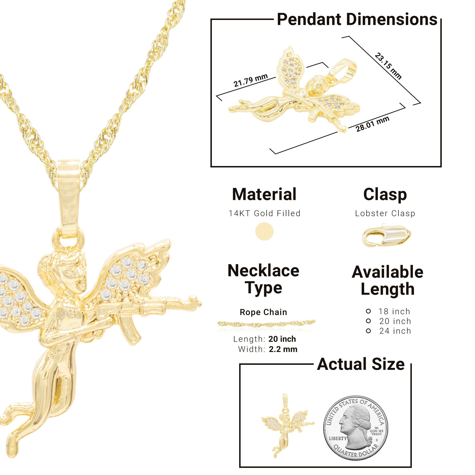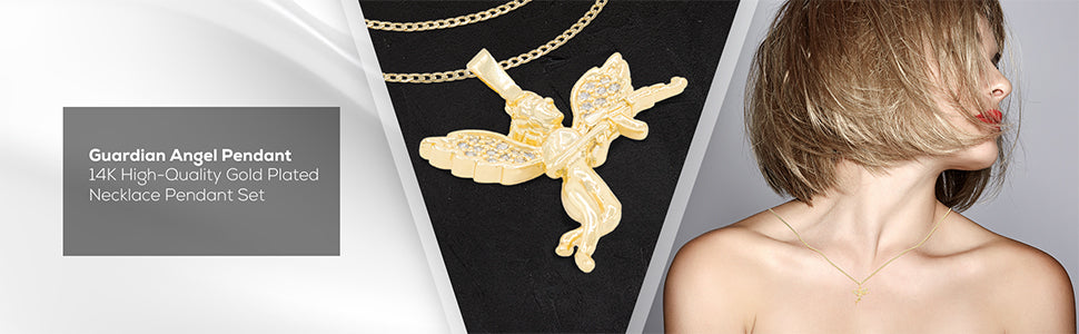 - 14K High-Quality Gold Filled Necklace Cubic Zirconia Guardian Angel Pendant Fashion Jewelry Set