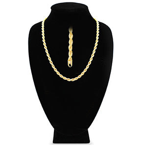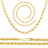 14K Gold Filled Rope Chain Necklace Bracelet Set For Men