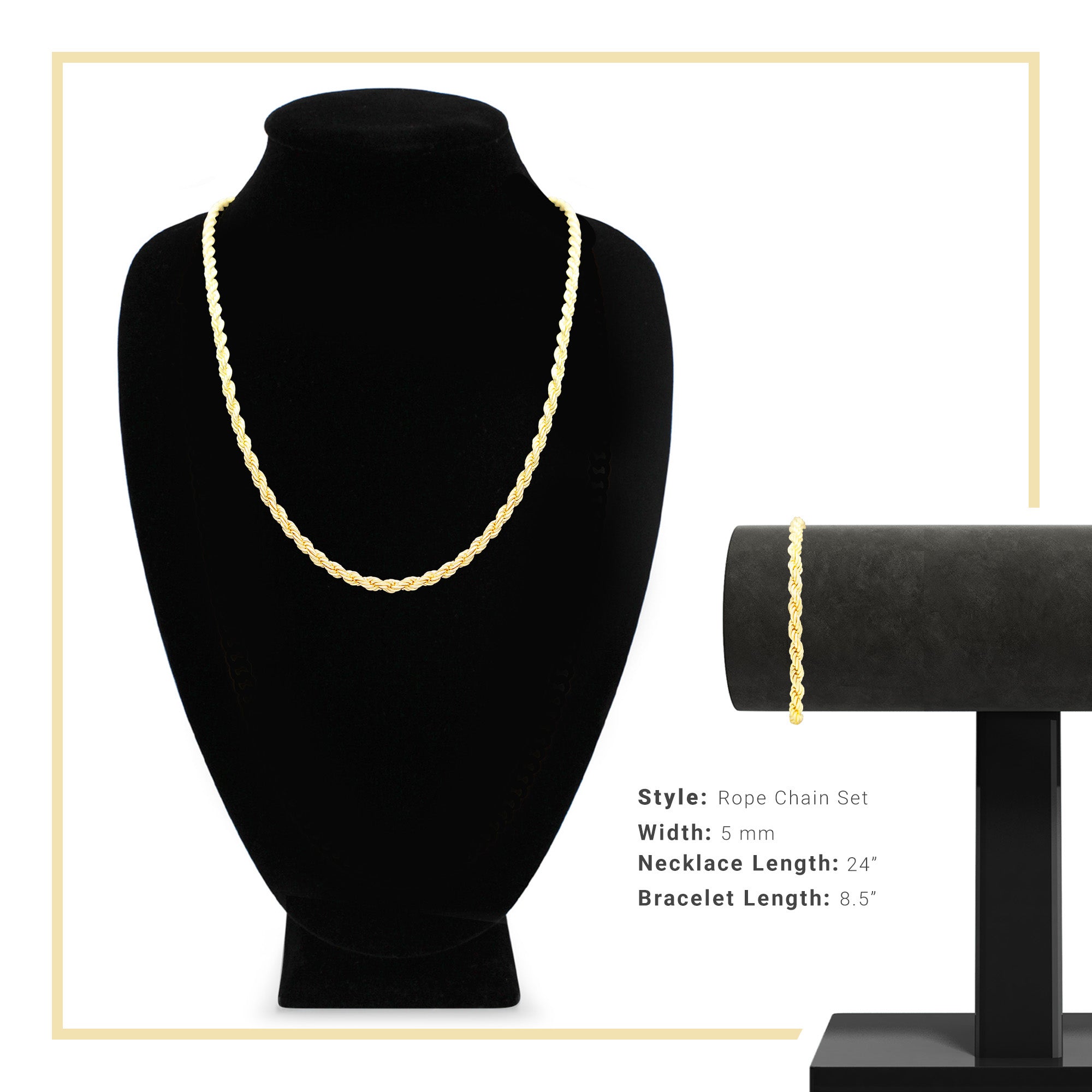 14K Gold Filled Rope Chain Necklace 24" Bracelet 8.5" Set for Men 5 - 6 mm