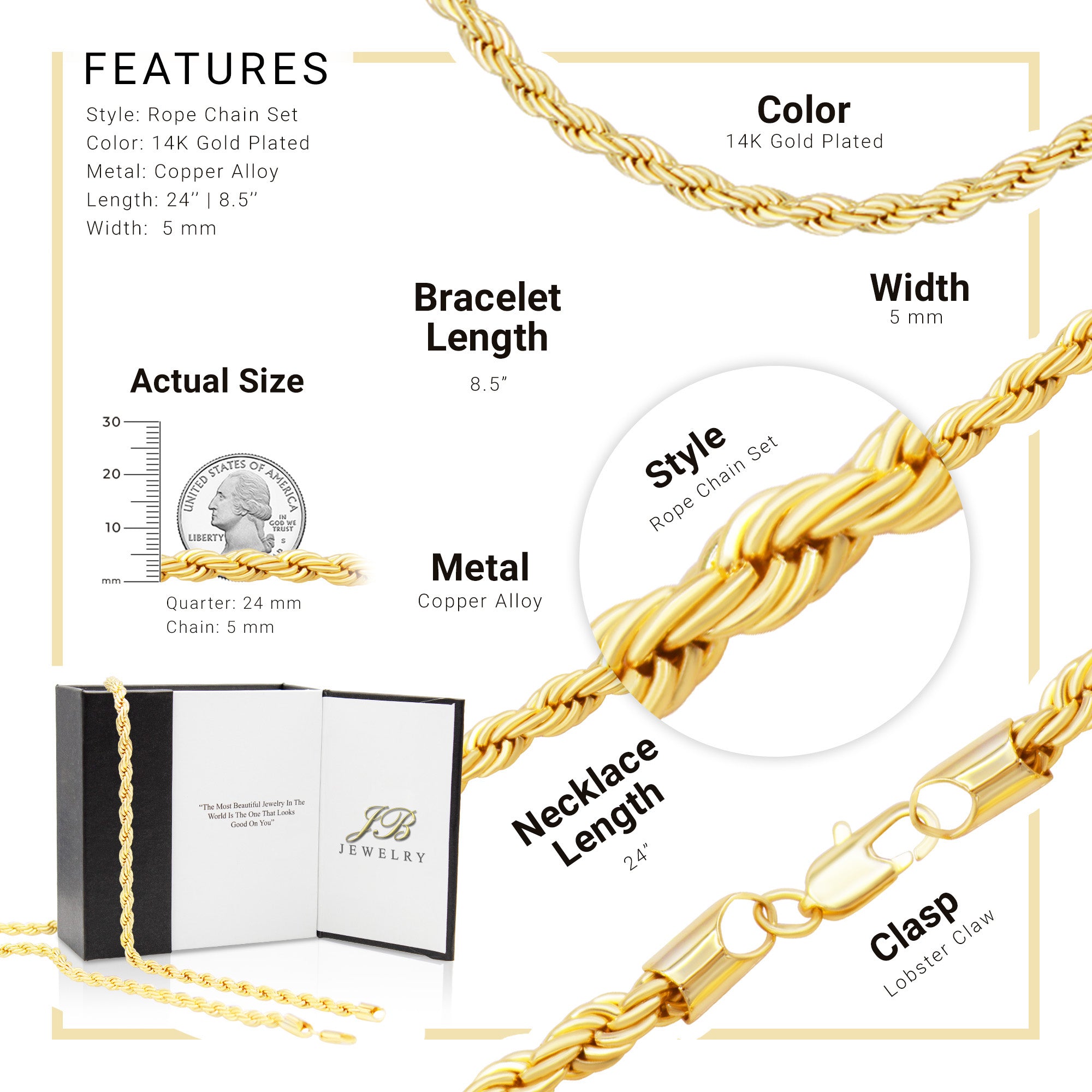 14K Gold Filled Rope Chain Necklace Bracelet Set Features